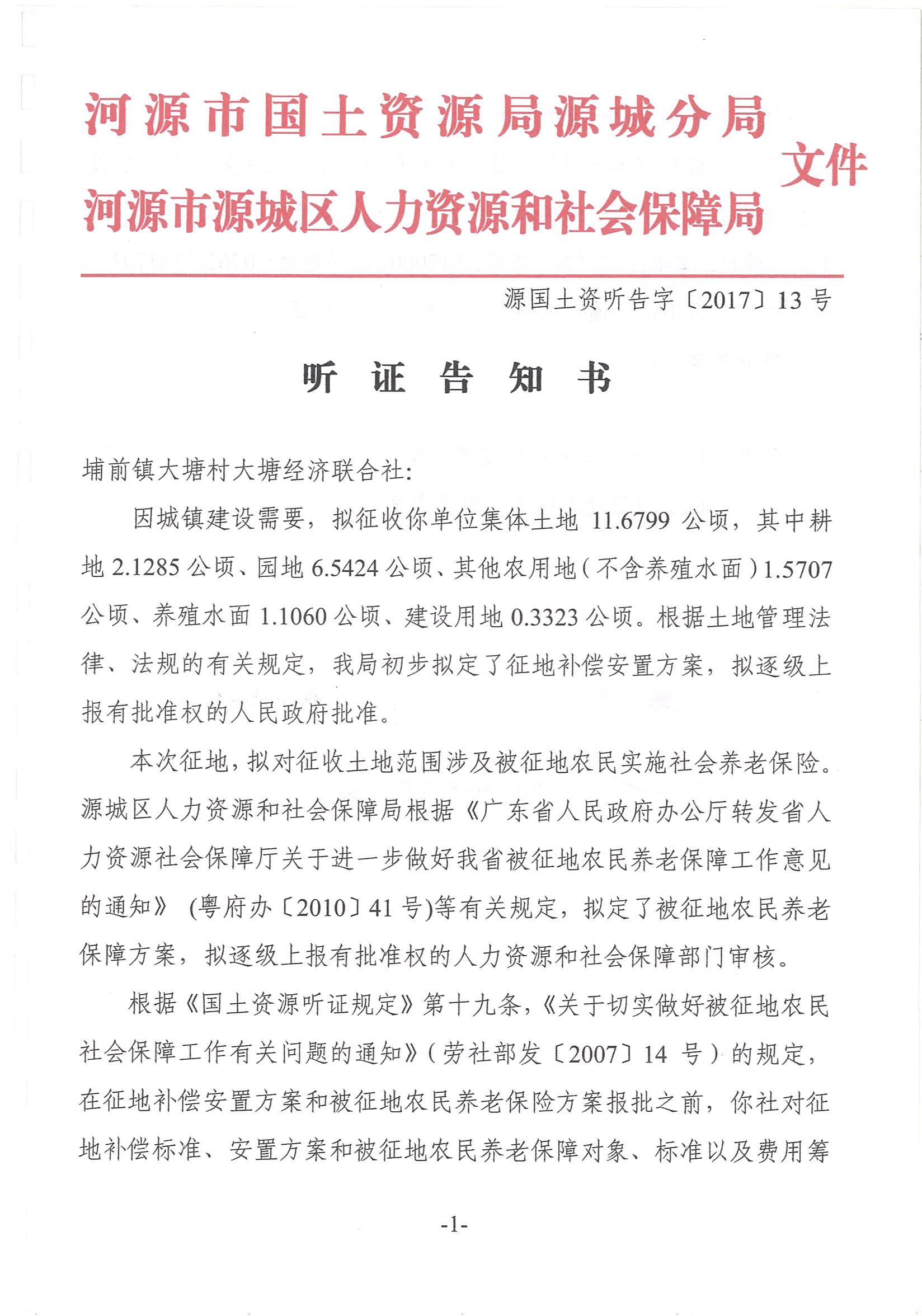 河源市城区2017年度第十七批次城镇建设用地听证材料