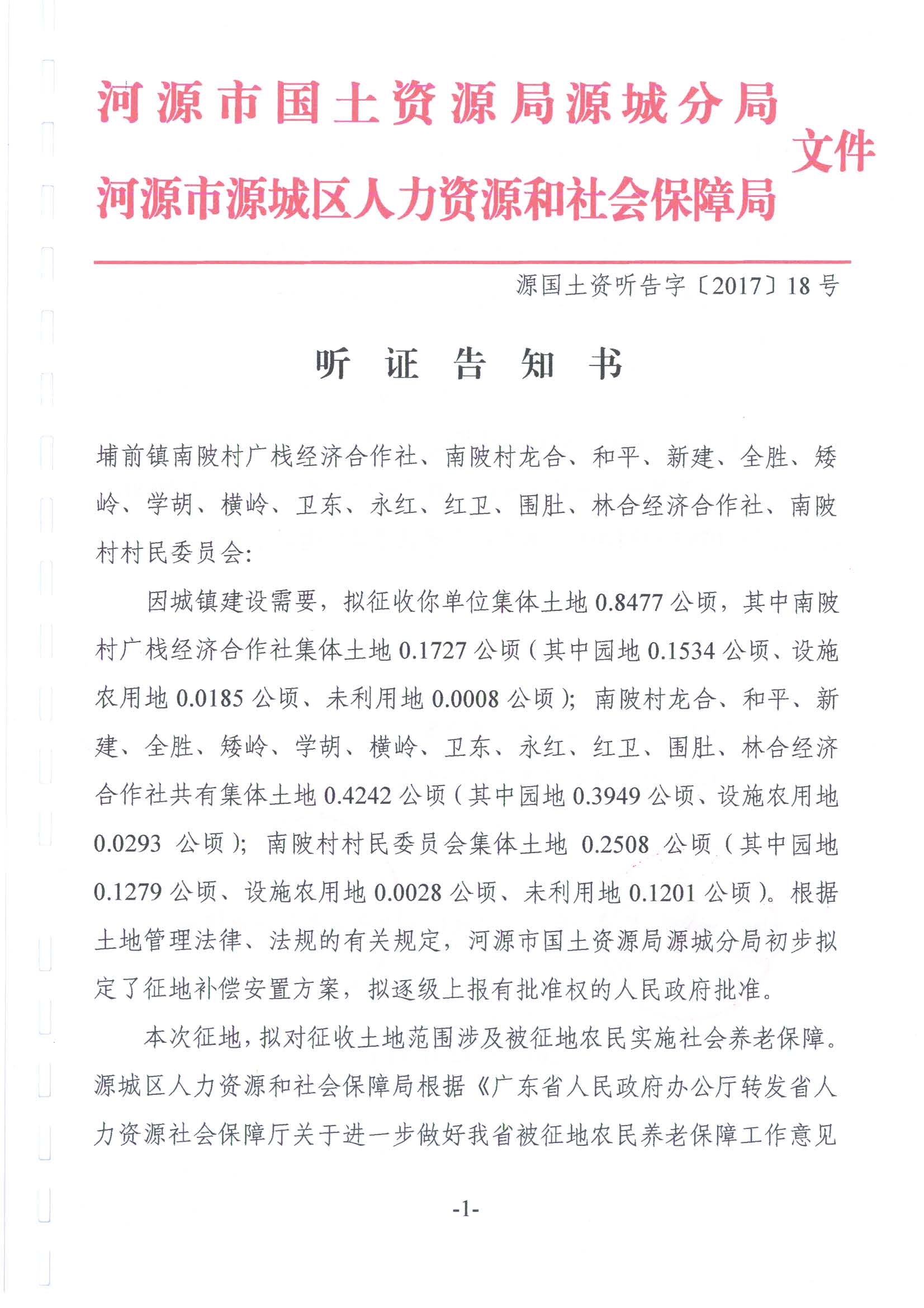 河源市城区2017年度第十九批次城镇建设用地听证材料
