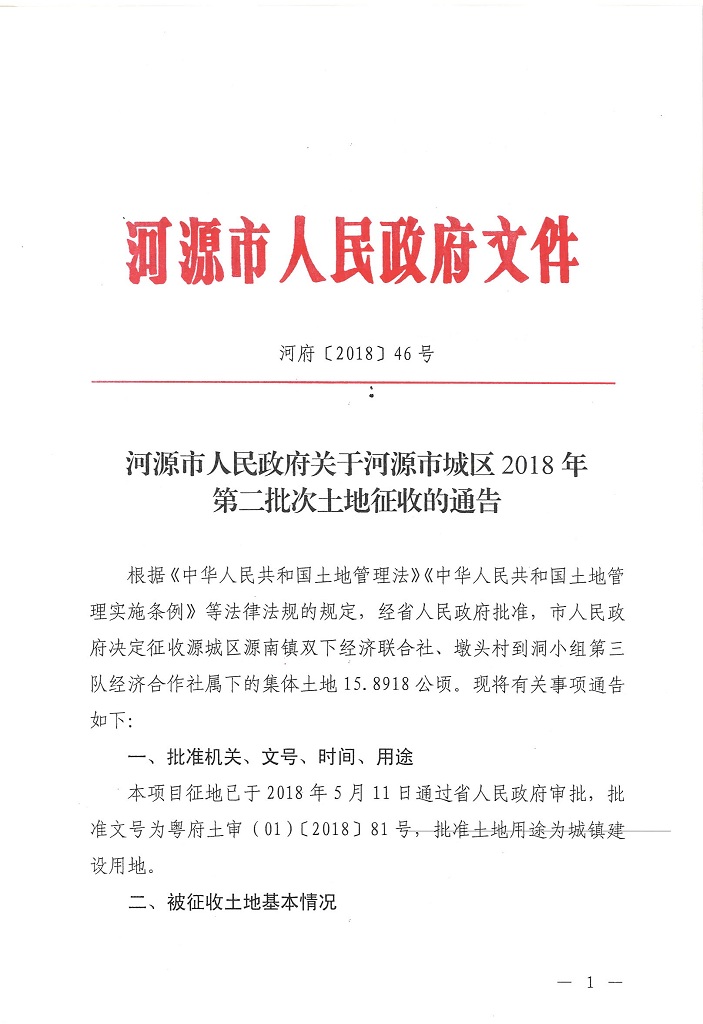 98色花堂 关于河源市城区2018年第二批次土地征收公告