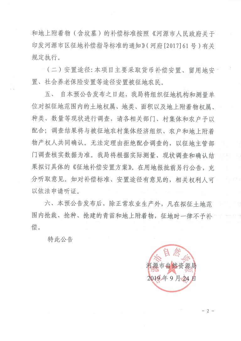 河源市自然资源局关于河源市综合保税区土地征收的预公告