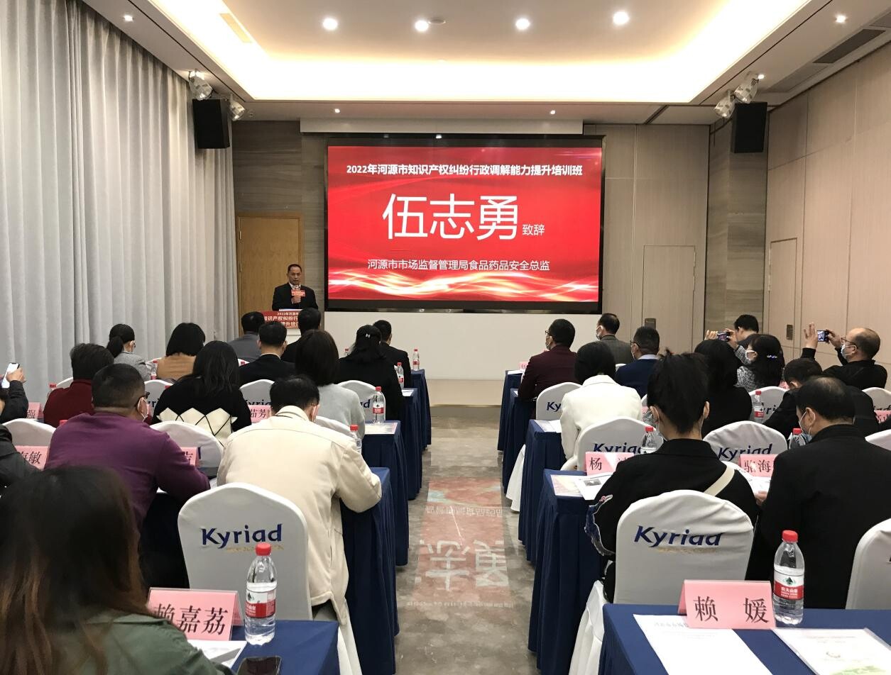 为进一步推动我市知识产权纠纷行政调解工作,建立多元化知识产权纠纷行政解决机制,1月6日,市市场监督管理局举办2022年河源市知识产权纠纷行政调解能力提升培训班,市市场监管局食品药品安全总监伍志勇出席开班仪式并致辞。