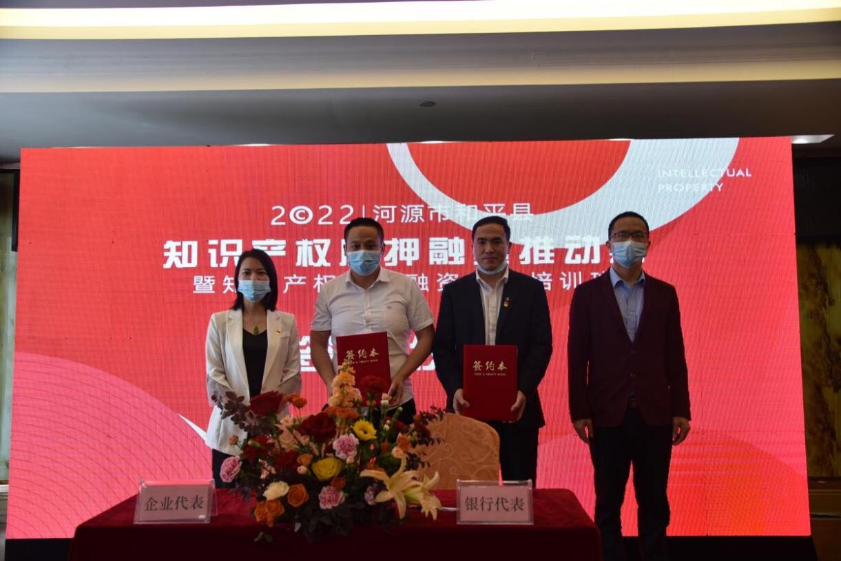 和平县市场监管局举办知识产权质押融资推动会暨知识产权质押融资实务培训班,对知识产权质押融资基础知识、知识产权质押融资流程、知识产权评估与运用等方面进行深入讲解,对知识产权质押融资产品作了详细介绍,加深企业对知识产权融资的新模式、新业态、新产品的认知。活动中,银行与企业签订知识产权质押融资意向合同,进一步推动企业利用商标、专利权进行质押融资,有效缓解科技型中小微企业融资难问题,实现知识产权向金融价值的有效转化。