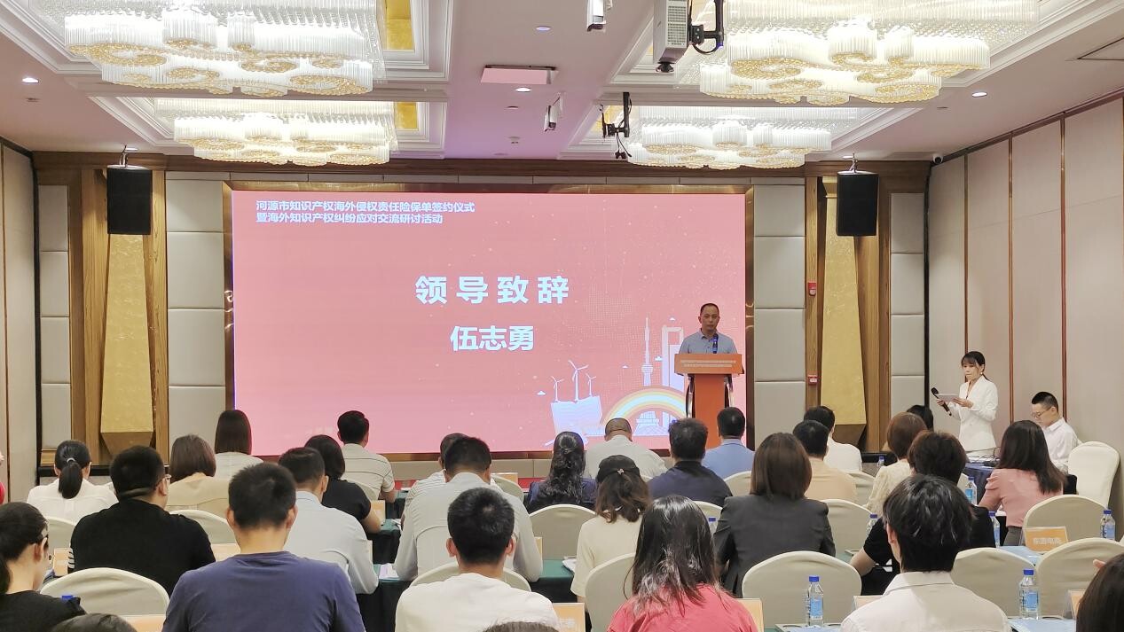 为进一步加强海外知识产权纠纷应对指导工作,提升河源市企业以市场化手段解决涉外知识产权纠纷的能力,817日,我市举办知识产权海外侵权责任险保单签约仪式暨海外知识产权纠纷应对交流研讨活动,河源市市场监督管理局(知识产权局)食品药品安全总监伍志勇出席活动并致辞。