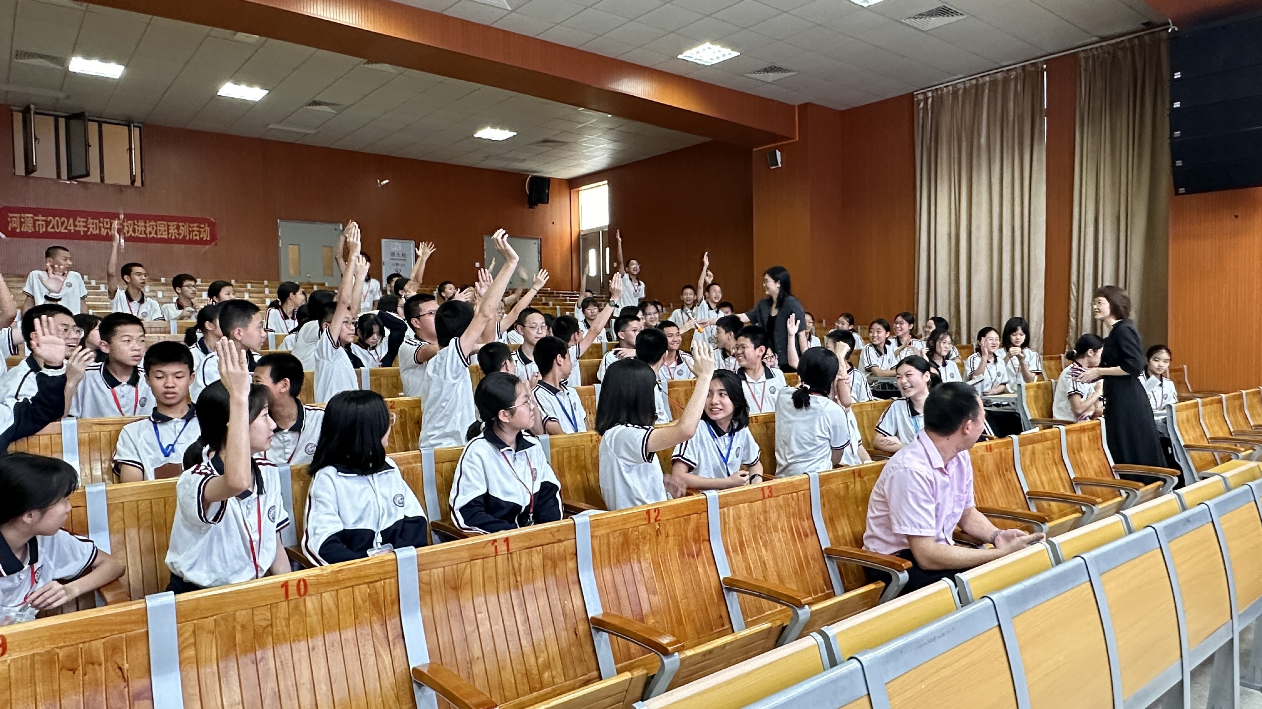 市市场监管局联合连平县市场监管局走进连平县附城中学,邀请知识产权专家为学生们深入浅出地介绍了知识产权的内涵、著作权、商标权、专利权的概念,以及保护知识产权重要性。学生们积极发言,通过互动问答,在轻松愉快的氛围中加深了对知识产权的理解。活动中,市市场监管局向连平县附城中学颁发了“河源市知识产权教育试点学校”牌匾,并赠予知识产权教育读本一批。该校高一、高二师生代表共200余人参加了活动。